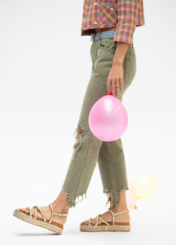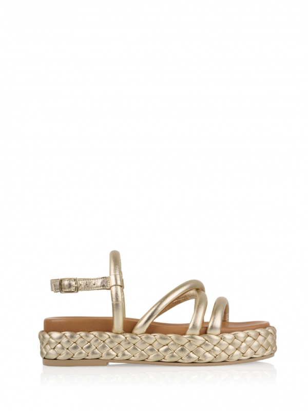Say hi to CYPRUS! Deze nieuwe sandalen zijn ontworpen om jouw outfit nog mooier te maken. De sandalen zijn gemaakt van metallic en hebben een leren voetbed. Hierdoor lopen ze comfortabel. Daarnaast hebben ze een plateauzool van gevlochten details en verschillende bandjes. Hiervan is het enkelbandje verstelbaar.